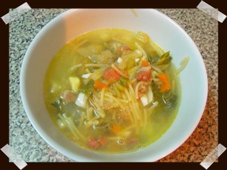 Esta sopa es ideal para una cena ligera, sin grasa, completa y, tal y como pide el tiempo, caliente. Yo suelo añadirle (cuando tengo) una corteza de jamón que le da un extra de sabor pero no es imprescindible puesto que ya de por si resulta muy sabrosa.