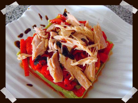 Hoy es lunes y todos sabemos que el fin de semana abusamos un poco con la comida, así que os dejo una receta ligera y fresca. Un entrante perfecto o plato único para una cena, como lo hicimos en casa. Es fácil de preparar y la presentación en capas hace que el emplatado sea muy resultón, sobre todo si tenemos invitados.
