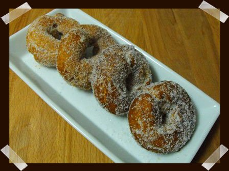 Me encantan los Donuts, es uno de ellos bollos que a pesar de su simpleza es difícil comerse solo uno así que cuando encontré esta receta pensé en intentarlo y el resultado es realmente bueno. No recuerdo de dónde la saqué, la tenía apuntada en una hoja entre mil papeles. Aquí os la dejo y de esta forma no volveré a perderle la pista. No quedan tan bonitos como los originales pero no tienen nada que envidiarles en cuanto al sabor.