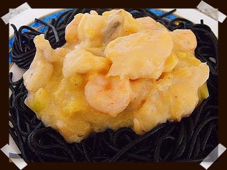 bechamel, fumet, gambas, platos unicos, rape, recetas, recetas con pescado, recetas de Navidad, segundos platos, spaguetti nero di sepia