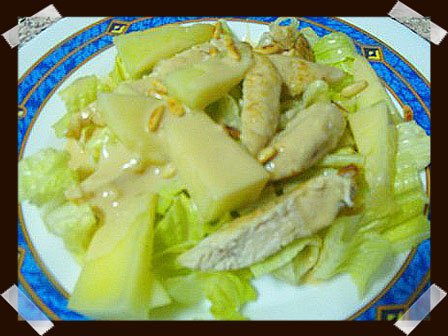 cenas, ensalada, entrantes de Navidad, lechuga, melon, piñones, pollo, primeros platos, recetas, recetas de Navidad