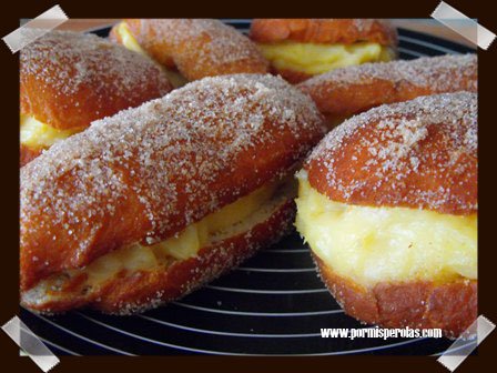 Las berlinas, antecedentes de los donuts, son prácticamente lo mismo pero sin agujero, de hecho se comercializan rellenas de crema, de cacao, con baño y sin baño. Hasta ahí creo que no os he descubierto nada nuevo. Luego están los Pepitos fritos, la otra parte de esta receta. Ese bollo relleno de crema lo conozco desde mi mas tierna infancia, no sé si sólo es en Madrid, quizá en otras provincias tenga otro nombre (agradeceré información al respecto), el caso es que me vuelve loca y a fin de cuentas, pensado fríamente, es una berlina alargada así que me decidí a hacer las dos formas de esta receta y darme un capricho doble.