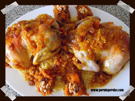 azafrán, azucar, calabaza, canela, cebolla, cocina árabe, cous cous, cuscús, jengibre, nueces, picantones, platos unicos, recetas, recetas con cous cous, recetas con cuscús, recetas con picantones, recetas con pollo, recetas de Oriente Medio